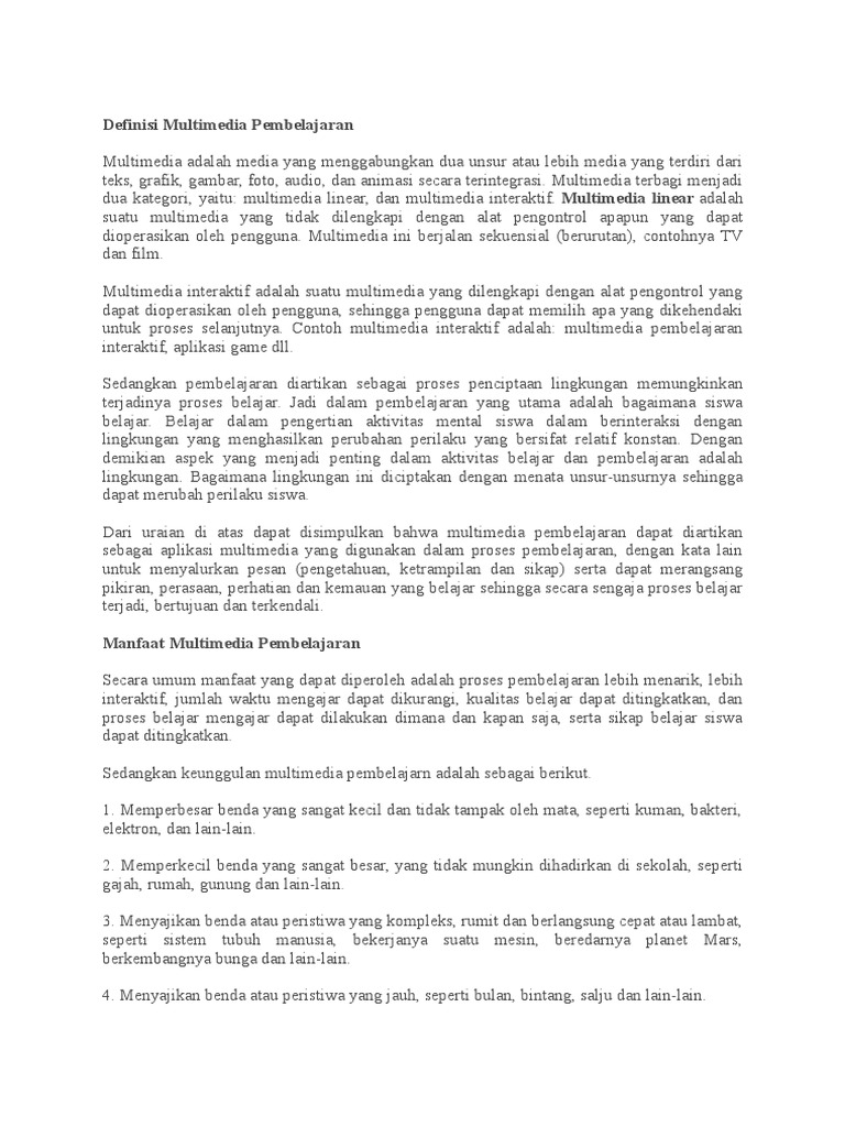 Jenis Media Interaktif Pengertian Manfaat Keunggulannya from duniapendidikan.co.id Salah satu agenda utama dalam msc adalah konsep sekolah bestari. Seramai 40 orang guru teknik dan vokasional di. Kajian ini dijalankan untuk meninjau tahap penggunaan abbm berasaskan multimedia dalam kalangan guru serta persepsi guru terhadap kepentingan penggunaan abbm berasaskan multimedia dalam pdp. Proses penyampaian sesuatu maklumat yang lebih efektif hasil daripada penggunaan pelbagai jenis media seperti teks, audio, video, grafik dan animasi merupakan antara kelebihan penggunaan multimedia dalam proses pengajaran dan pembelajaran. Pengajaran dan pembelajaran berbantukan komputer (ppbk) semakin menjadi penting dalam zaman koridor raya multimedia (msc) dan kemajuan hari ini. Multimedia sekarang telah banyak dipakai untuk mempresentasikan suatu informasi. Tambahan pula, terdapat segelintir guru yang bersikap tidak terbuka dalam mengimbangi arus pemodenan iaitu tidak mahu menggunakan bbm multimedia dalam proses pengajaran dan pembelajaran (nandi, 2006). Penggunaan ict dalam p&p dan manfaatnya.